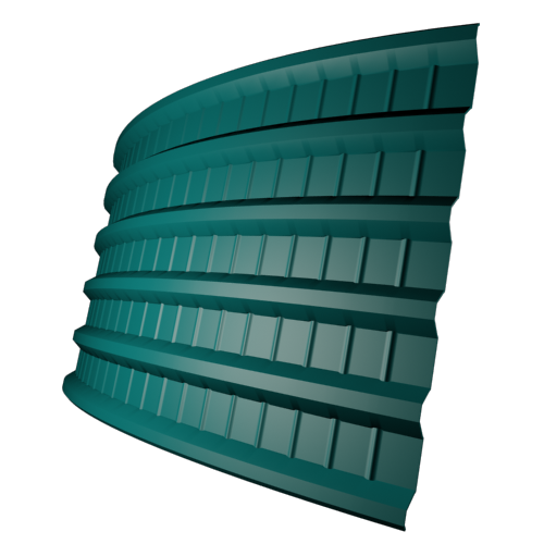 Название арочный профнастил говорит само за себя. Используется для арочных конструкций при возведении козырьков, стен, углов различных объектов.